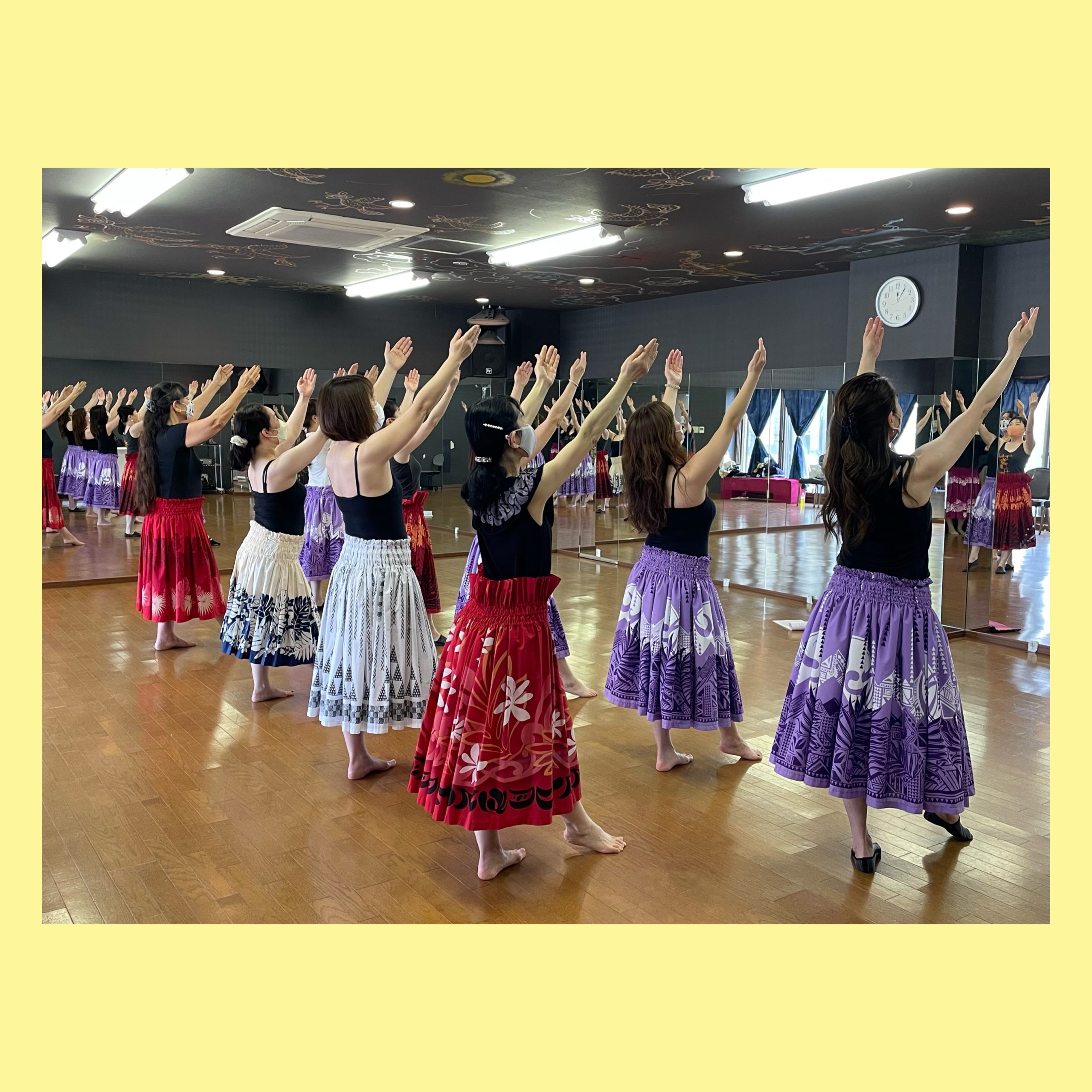 鏡をチラ見して、みんなと同じタイミングかな?角度違ってないかな?など確認しましょうね。焦らず、ひとつひとつキレイなカタチを体に覚えさせていきましょう!(^^)!